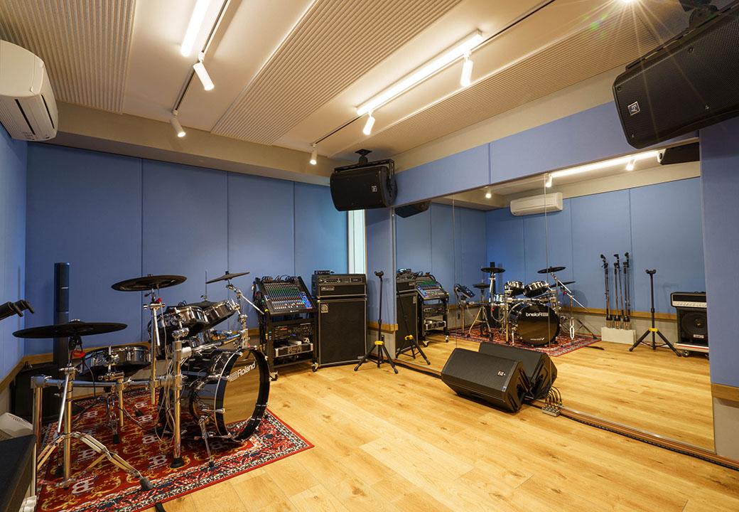 また、天井高3.2mに5,400×1,800の鏡張りと映画館さながらのプロジェクターシステムを設備。バンドリハーサルだけではなくダンス練習やカルチャースクール開講、スタジオライブ、ライブビューイングなど…、